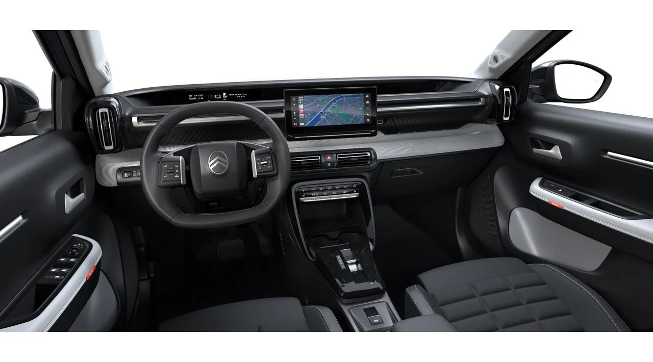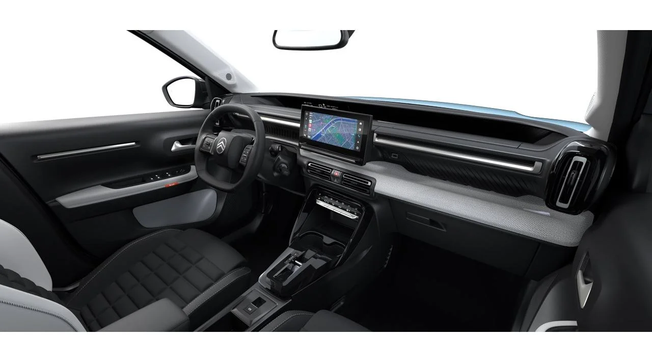 Na pokładzie znajduje się system My Citroën Drive z 10,25-calowym ekranem dotykowym, wbudowaną nawigacją 3D oraz bezprzewodowym Apple CarPlay i Android Auto. W standardzie oferowana jest ładowarka indukcyjna, łącznie trzy porty USB typu C i wyświetlacz Head-Up TFT. Komfort użytkowania zwiększają automatyczna klimatyzacja, czujniki parkowania z przodu i z tyłu oraz kamera cofania.