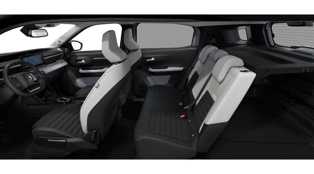 C3 Aircross MAX oferuje przestronne wnętrze z tapicerką Metropolitan Grey i komfortowymi siedzeniami Advanced Comfort. Wysoka pozycja za kierownicą, duża ilość schowków oraz dzielona tylna kanapa 2/3–1/3 czynią go niezwykle praktycznym autem rodzinnym. Wysoka konsola środkowa z podłokietnikiem, regulowany bagażnik z ruchomą podłogą oraz przyciemniane szyby zapewniają codzienną wygodę użytkowania.