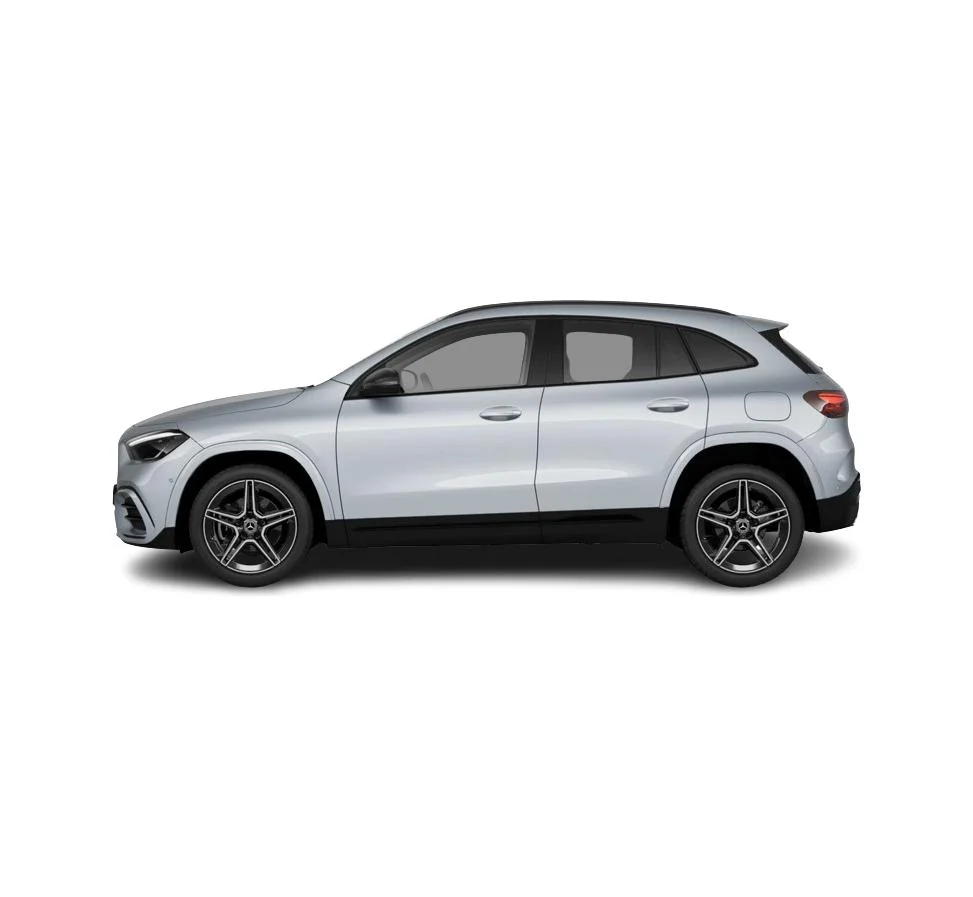 Mercedes-Benz GLA 200 d to SUV, który idealnie łączy elegancję marki z praktycznością auta podniesionego. Sylwetka jest zgrabna, dynamiczna i miejska – auto wygląda nowocześnie zarówno z przodu, gdzie dominują LED-owe reflektory, jak i z tyłu, gdzie linia nadwozia zachowuje lekki, sportowy charakter. Wysoka pozycja za kierownicą daje świetną widoczność, a kompaktowe wymiary ułatwiają manewrowanie w ciasnych uliczkach. To samochód, który świetnie odnajduje się w każdych warunkach, zachowując typowy dla Mercedesa prestiżowy wygląd.