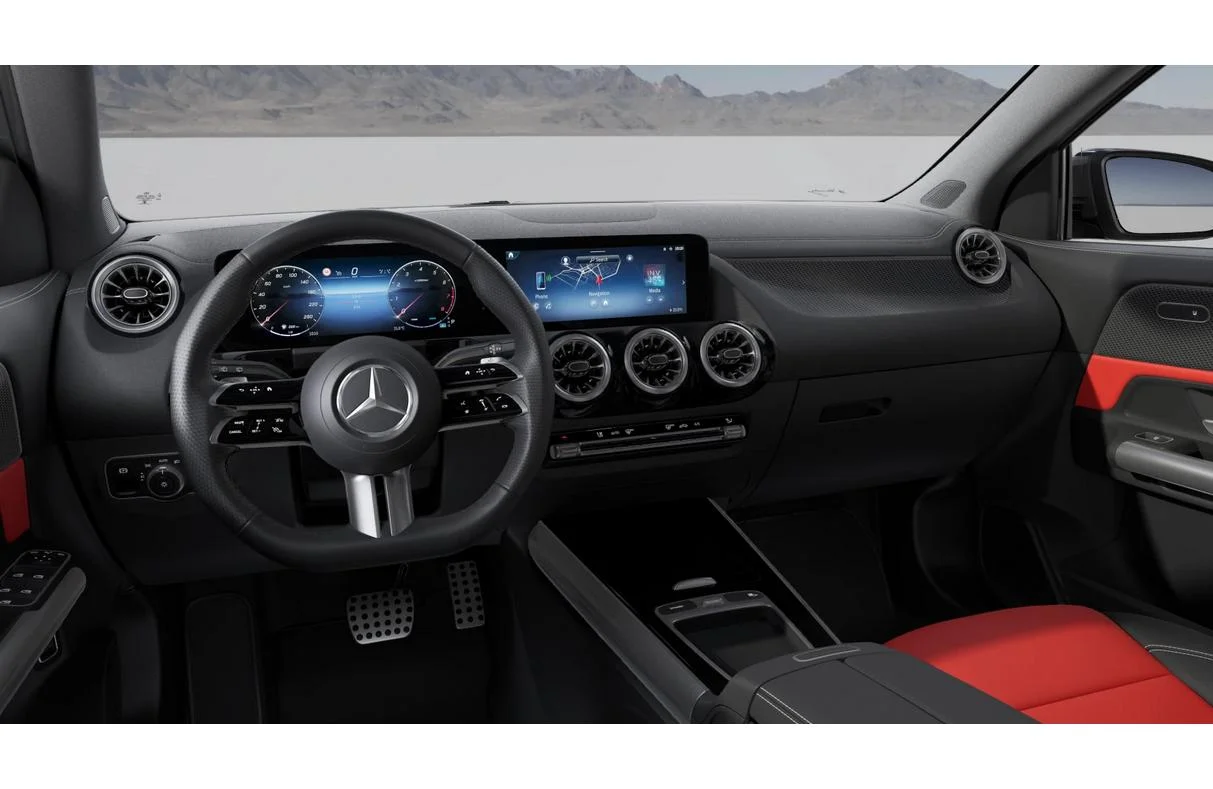 Kabina GLA 250 4MATIC oferuje połączenie komfortu klasy premium z lekkim sportowym sznytem. Fotele z pakietu komfortowych siedzeń są wygodne, stabilne i podgrzewane, a czarna podsufitka podkreśla bardziej dynamiczną atmosferę wnętrza. Elementy wykończeniowe, rozbudowane schowki oraz pakiet przestrzeni bagażowej dbają o praktyczność. Podwójne ekrany 10,25” tworzą efektowny, cyfrowy kokpit, który jest spójny, intuicyjny i wygląda świetnie niezależnie od pory dnia.