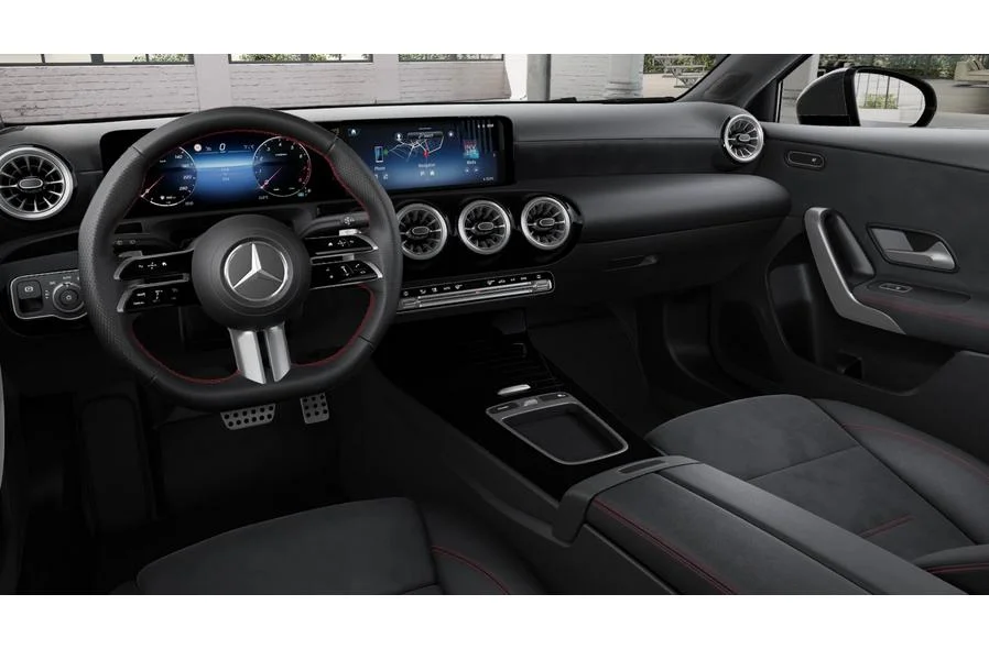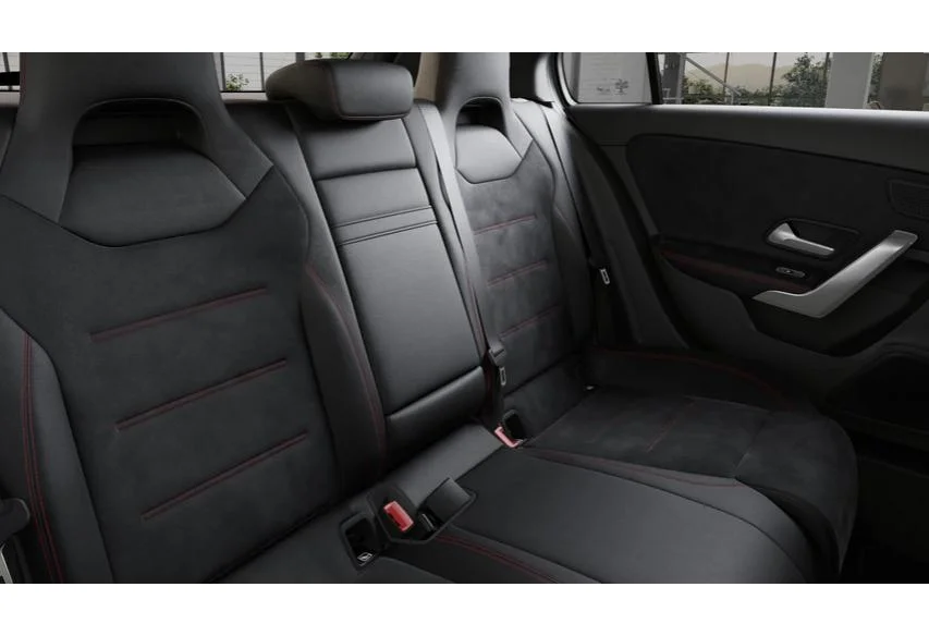 Kabina A 250 4MATIC oferuje wysoką jakość wykończenia, sportowe akcenty i bardzo dopracowaną ergonomię. Fotele są wygodne, podgrzewane i dobrze trzymają ciało, co sprawdza się zarówno w trasie, jak i podczas dynamiczniejszej jazdy. Cyfrowy kokpit MBUX z dużymi ekranami tworzy futurystyczne, przejrzyste środowisko. Liczne schowki, siatki w oparciach foteli, praktyczny podłokietnik i większe elementy konsoli środkowej podnoszą funkcjonalność na co dzień.