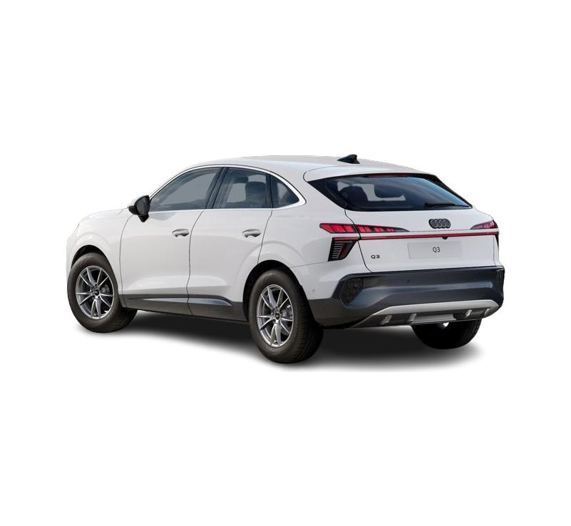 Pomimo sportowo opadającego dachu Q3 Sportback pozostaje bardzo funkcjonalnym SUV-em. Bagażnik o pojemności 488 litrów oraz możliwość składania oparć tylnej kanapy umożliwiają transport większych przedmiotów. Wysoka pozycja za kierownicą daje świetną widoczność, a kompaktowe wymiary sprawiają, że auto sprawdza się idealnie w mieście.
