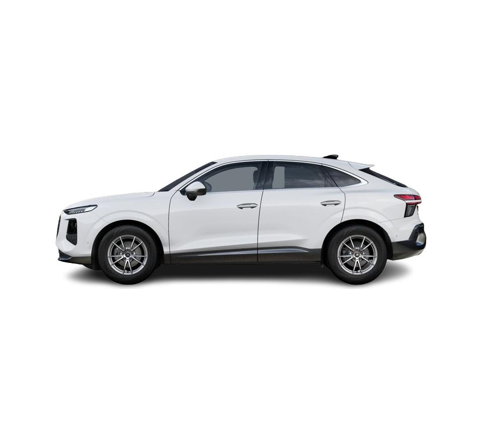 Audi Q3 Sportback w tej konfiguracji wyróżnia się agresywniejszą linią niż standardowe Q3. Mocniej opadający dach, wyraźne przetłoczenia i charakterystyczny przód z szerokim Singleframe nadają mu bardziej dynamiczny, młodzieżowy charakter. Auto wygląda lekko, a jednocześnie solidnie, idealnie wpisując się w aktualny styl marki.