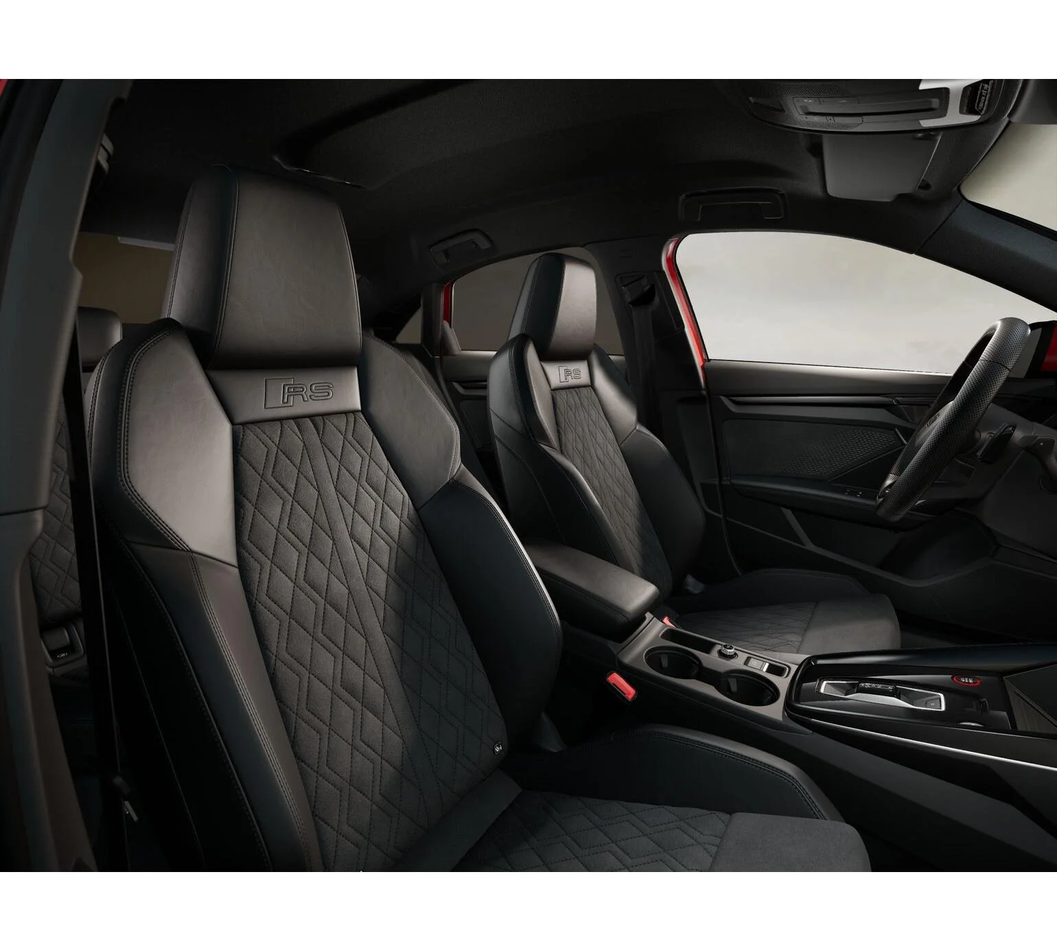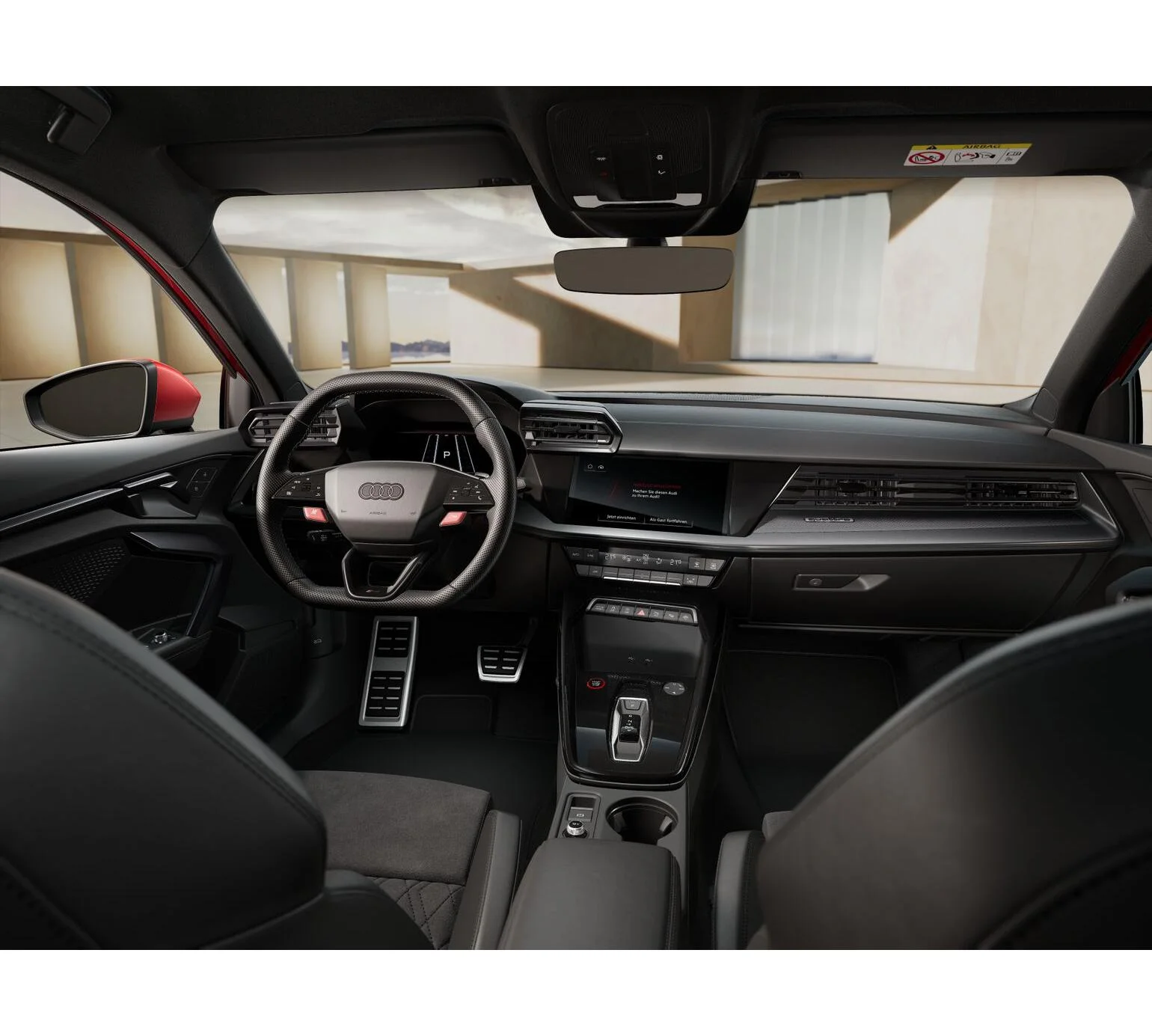 We wnętrzu dominuje sportowy klimat z nutą luksusu. Fotele RS zapewniają doskonałe podparcie, a cyfrowy kokpit Audi Virtual Cockpit prezentuje najważniejsze informacje w dynamicznym, czytelnym układzie. Ambientowe podświetlenie, wysokiej klasy materiały i detale typowe dla modeli RS dopełniają prestiżowego charakteru kabiny.