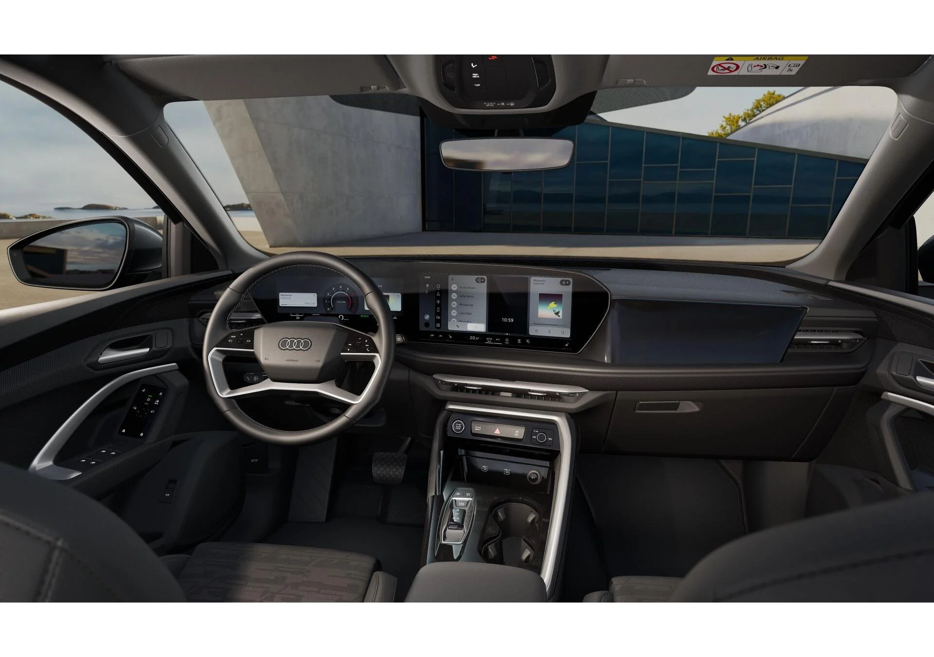Kabina Audi Q5 została zaprojektowana z myślą o wygodzie i wysokiej jakości odbioru na co dzień. Ergonomiczna pozycja za kierownicą, czytelne rozwiązania i dobre wyciszenie sprzyjają spokojnej jeździe. Wnętrze oferuje wystarczająco dużo przestrzeni dla pasażerów oraz komfort w dłuższych trasach. To samochód, w którym łatwo poczuć klasę premium bez przesady.