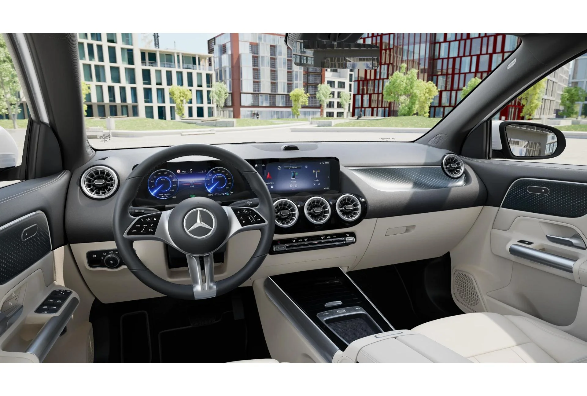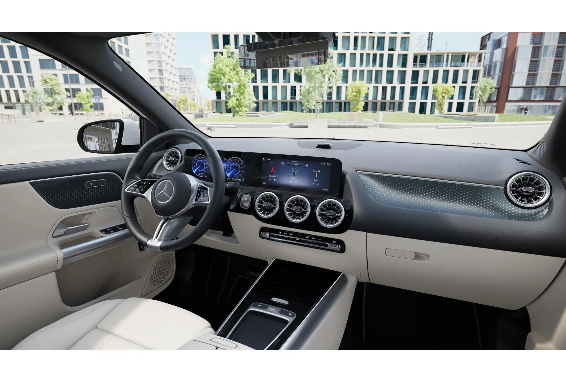 Wnętrze EQA 250+ to połączenie nowoczesnej technologii z typową dla Mercedesa solidnością wykonania. Ergonomicznie zaprojektowana deska rozdzielcza oraz system multimedialny MBUX tworzą intuicyjne środowisko pracy kierowcy. Materiały użyte we wnętrzu są przyjemne w dotyku i sprawiają wrażenie trwałych. Przestrzeń w kabinie bez problemu wystarcza dla pięciu osób podczas codziennego użytkowania.