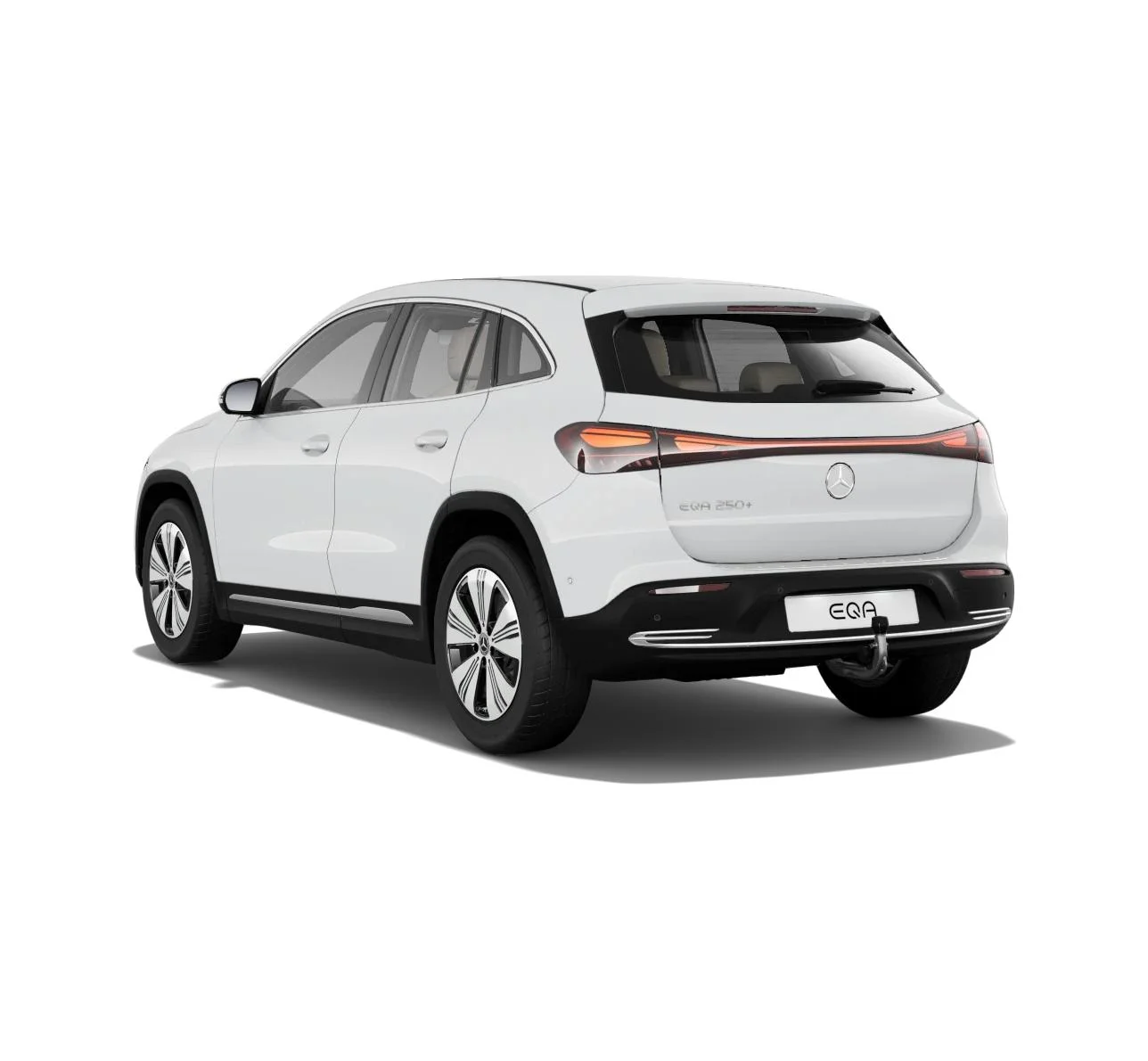 Mercedes-Benz EQA 250+ to kompaktowy SUV o nowoczesnej, czystej stylistyce typowej dla elektrycznej rodziny EQ. Smukłe proporcje, gładkie powierzchnie nadwozia i charakterystyczny pas przedni nadają mu elegancki, ale nienachalny wygląd. Auto dobrze wpisuje się zarówno w miejski krajobraz, jak i w dłuższe trasy. To propozycja dla osób, które chcą wejść w elektromobilność bez rezygnowania z prestiżu marki premium.