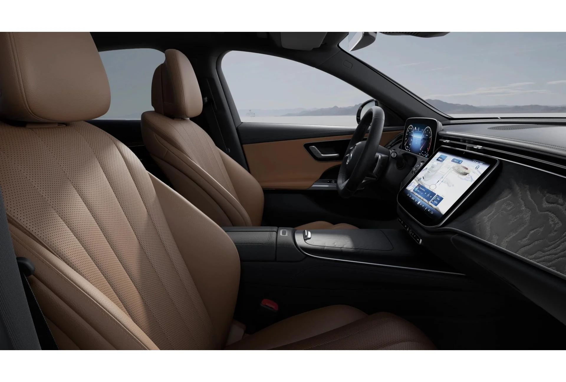 Kabina E-Klasy to przestrzeń, w której od razu czuć wysoką jakość. Komfortowe, podgrzewane fotele, nastrojowe oświetlenie Ambiente oraz elementy wykończone drewnem jesionowym tworzą atmosferę nowoczesnego luksusu. Panoramiczny Widescreen Cockpit i czytelny system COMAND zapewniają intuicyjną obsługę, a wyciszenie kabiny pozwala cieszyć się jazdą nawet podczas długich tras.