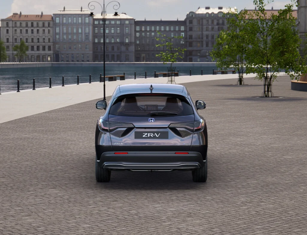 Design zewnętrzny Hondy ZR-V Elegance charakteryzuje się śmiałymi liniami i dynamiczną sylwetką, co podkreśla jej sportowy charakter. Nowoczesne reflektory LED, elegancka chromowana atrapa chłodnicy oraz stylowe 18-calowe felgi aluminiowe sprawiają, że ZR-V przyciąga wzrok swoją nowoczesnością i elegancją. Aerodynamiczny kształt karoserii nie tylko wzmacnia sportowy wygląd, ale również przyczynia się do poprawy efektywności paliwowej.