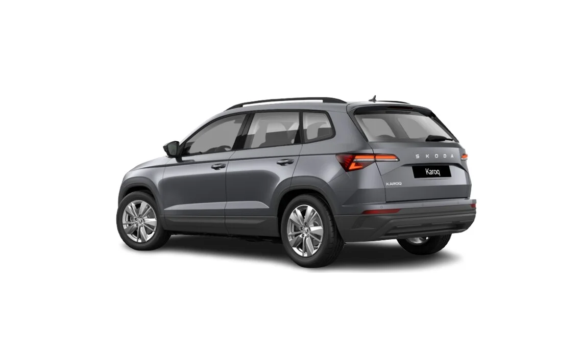 Karoq wyróżnia się muskularną sylwetką, charakterystycznym grillem i nowoczesnymi reflektorami LED. Wersja Selection otrzymuje dodatkowe detale stylistyczne, takie jak eleganckie obręcze kół ze stopów lekkich, przyciemniane szyby i elementy nadwozia w kolorze nadwozia, co nadaje mu bardziej wyrafinowanego charakteru.