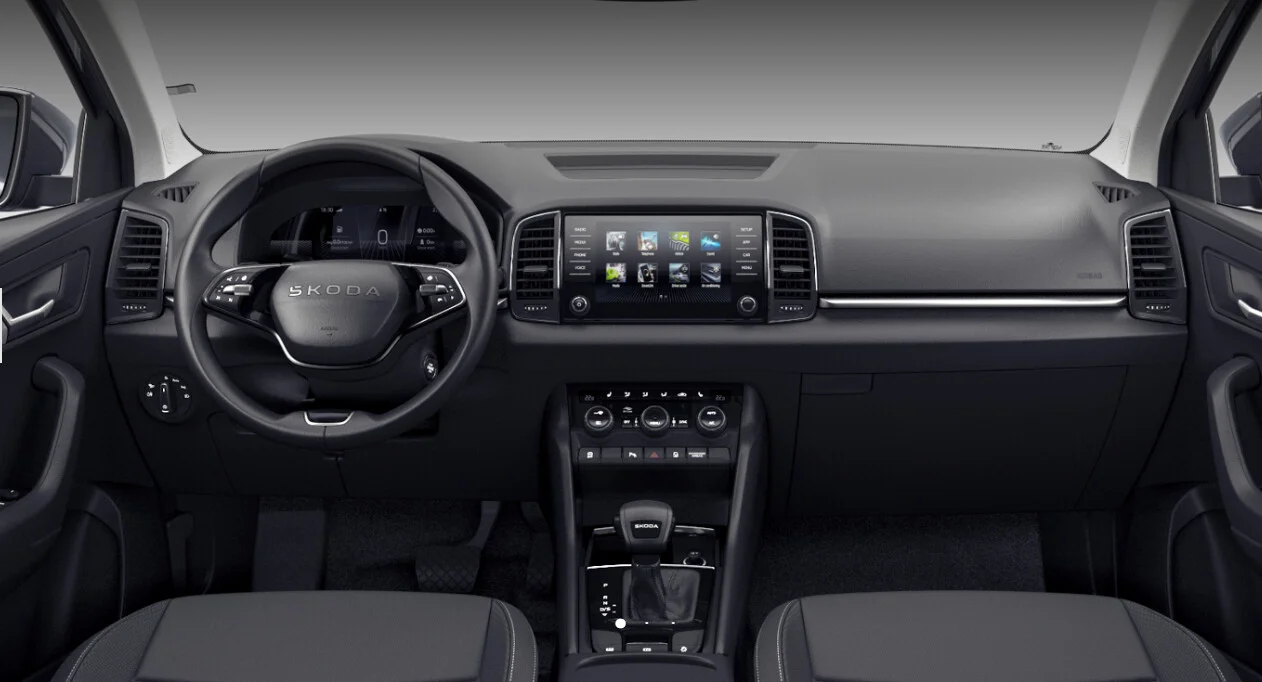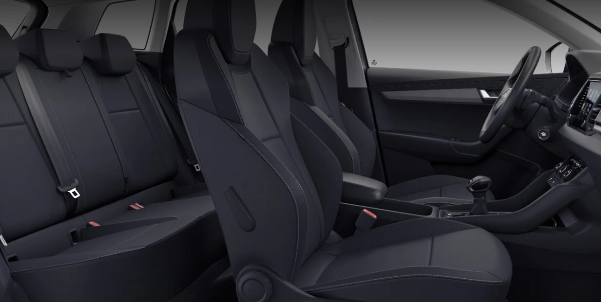Wnętrze Karoqa to połączenie przestronności i ergonomii. Kabina oferuje dużo miejsca dla pasażerów z przodu i z tyłu, a bagażnik o pojemności aż 521 litrów (z możliwością powiększenia) sprawia, że to auto idealnie sprawdza się na rodzinne wyjazdy. Materiały wykończeniowe są wysokiej jakości, a deska rozdzielcza uporządkowana i intuicyjna w obsłudze.
