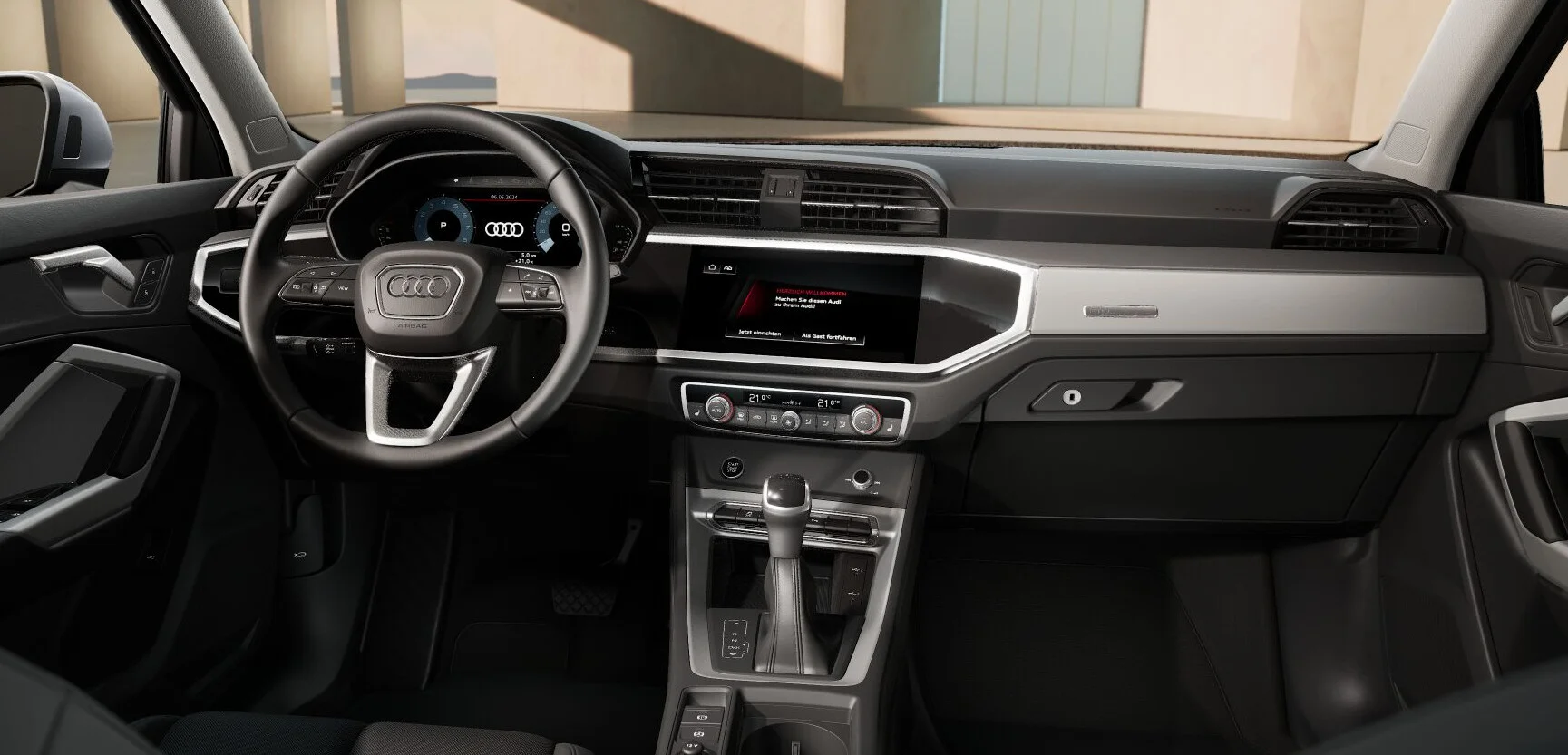 Kabina Q3 35 TFSI oferuje eleganckie wykończenie i przestrzeń typową dla SUV-a klasy premium. Cyfrowy kokpit Audi Virtual Cockpit oraz system MMI z ekranem dotykowym zapewniają intuicyjną obsługę. Fotele są komfortowe i dobrze wyprofilowane, a bagażnik o pojemności do 675 litrów oferuje świetną funkcjonalność.