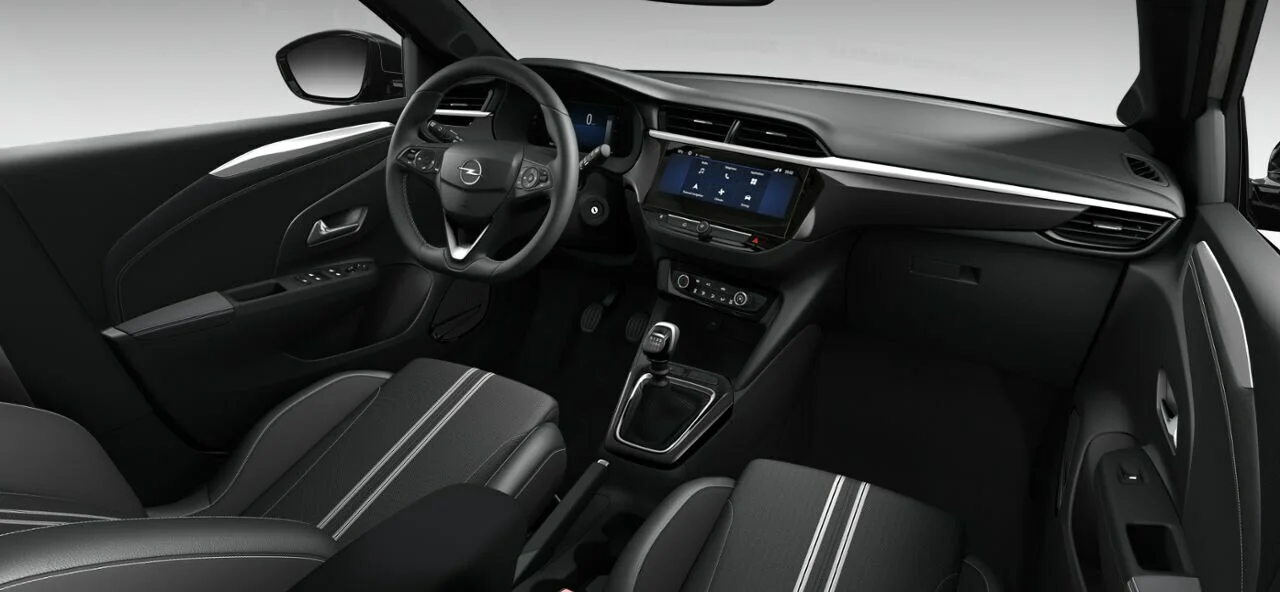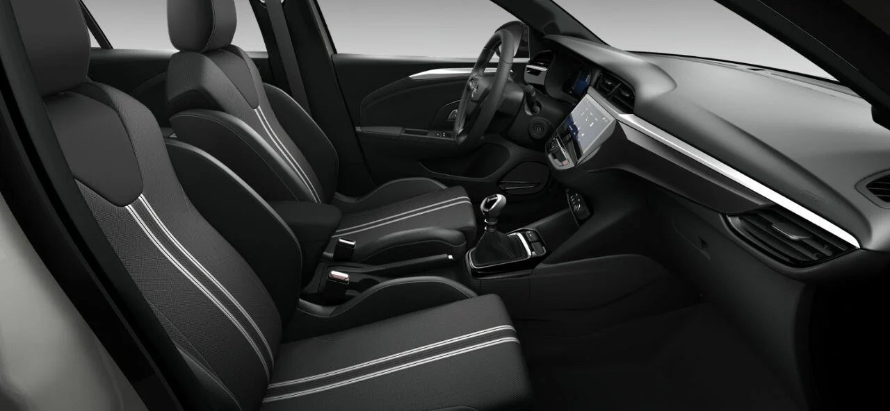 W kabinie Corsy znajdziesz przemyślane rozwiązania i solidne wykończenie. Tapicerka materiałowa Fresez w kolorze czarnym nadaje wnętrzu eleganckiego charakteru, a ergonomicznie rozmieszczone elementy sterujące zapewniają łatwość obsługi. Fotele oferują odpowiedni komfort na co dzień, a pojemność przestrzeni bagażowej zaskakuje jak na auto tej klasy, umożliwiając przewóz zakupów czy bagażu na weekendowy wypad.