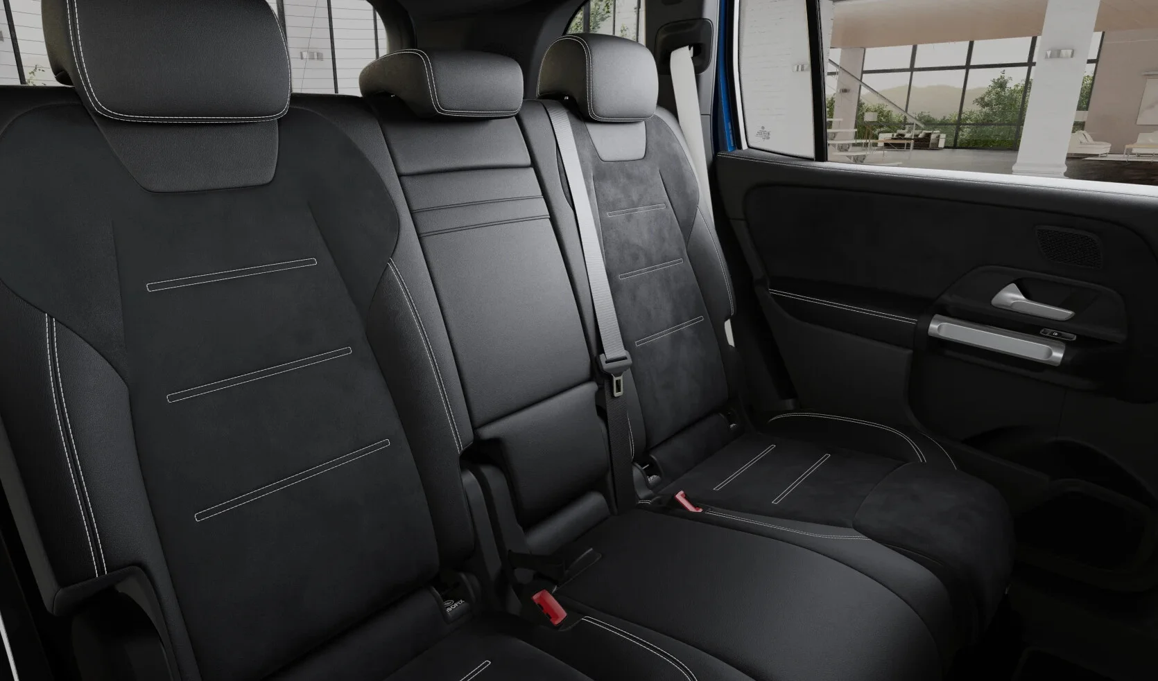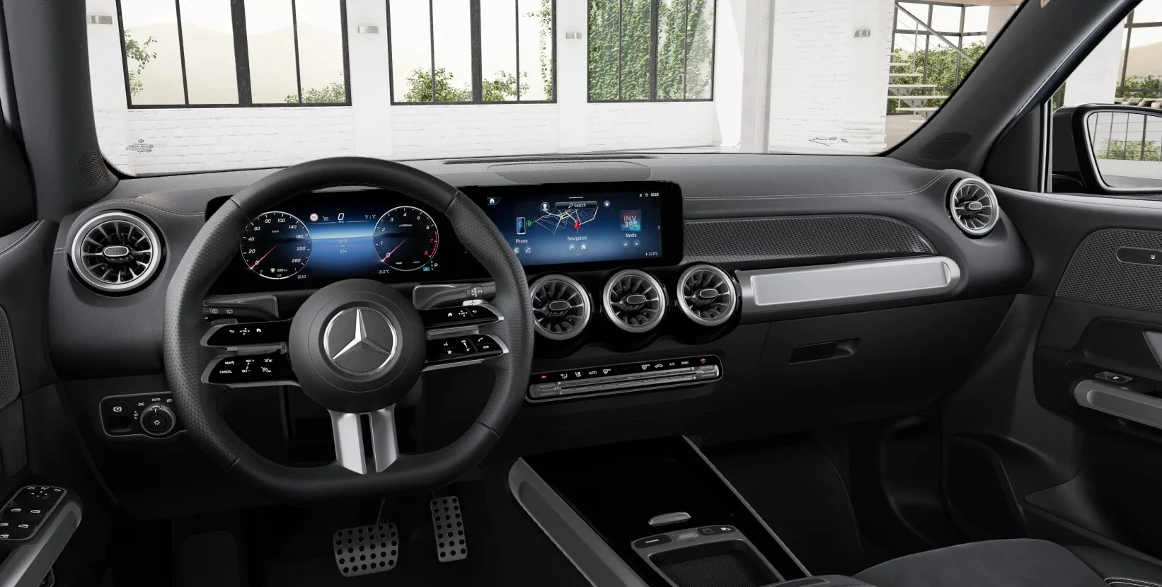 Kabina GLB 200 to przestrzeń zaprojektowana z myślą o komforcie i technologii. Pakiet AMG Premium dodaje sportową kierownicę obszytą skórą Nappa, fotele z wyprofilowaniem AMG oraz nastrojowe oświetlenie ambientowe. Wersja ta zawiera również zaawansowany system MBUX z ekranami o wysokiej rozdzielczości i obsługą głosową.