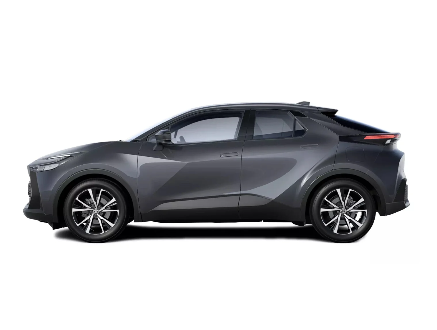 Toyota C-HR Style 1.8 Hybrid 140 KM to kompaktowy crossover, który wyróżnia się dynamiczną sylwetką, ostrymi liniami nadwozia i nowoczesnymi detalami stylistycznymi. Charakterystyczny grill, reflektory LED oraz wyraziste przetłoczenia nadają mu futurystyczny i elegancki wygląd, który przyciąga wzrok zarówno w mieście, jak i na trasie.