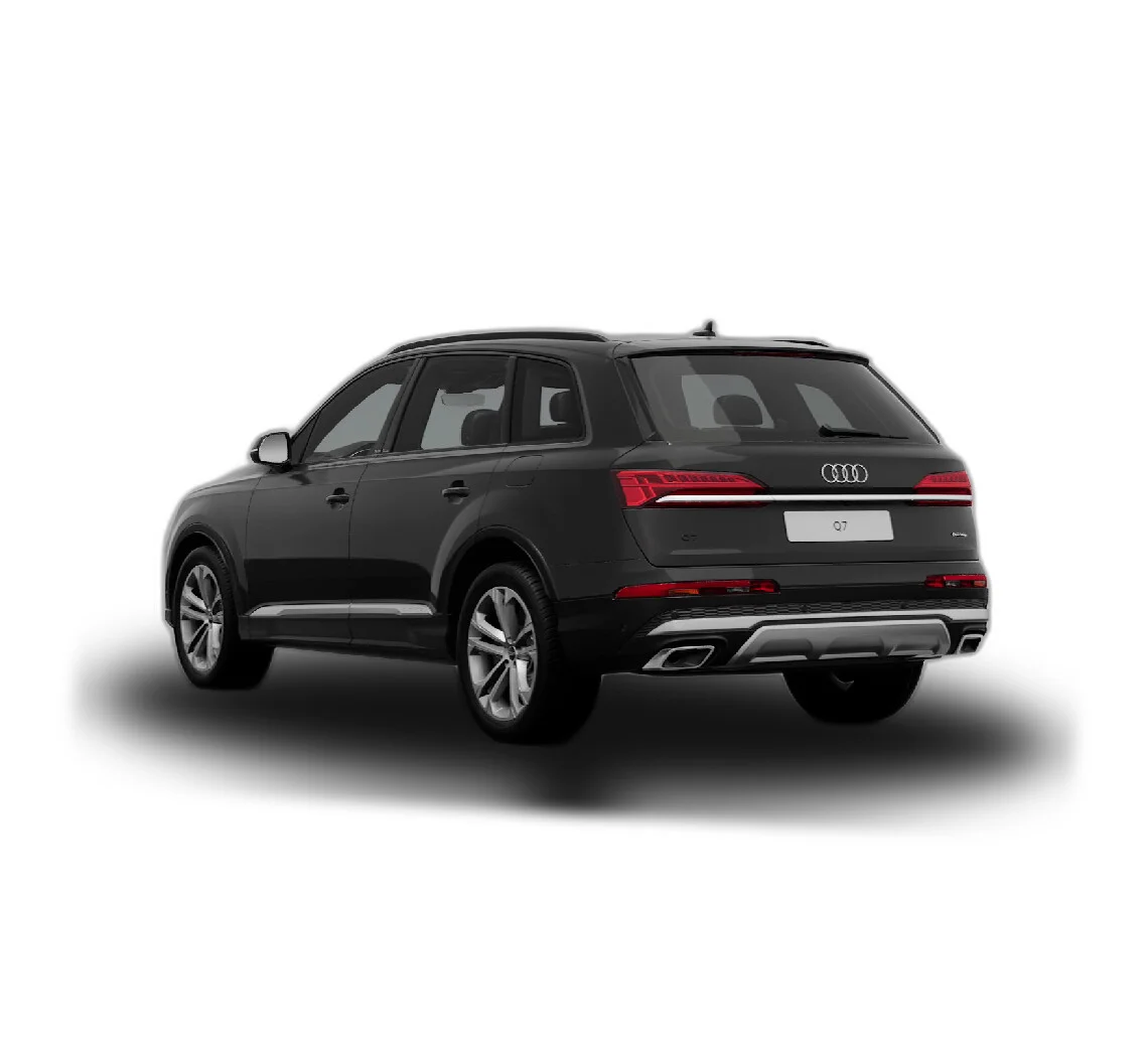 Audi Q7 55 TFSI e quattro to elegancki SUV o dynamicznych proporcjach, który łączy w sobie nowoczesną stylistykę i funkcjonalność. Charakterystyczna osłona Singleframe, wyraziste linie nadwozia oraz efektowne reflektory LED nadają mu zdecydowanego, prestiżowego wyglądu. Q7 doskonale prezentuje się zarówno w miejskiej scenerii, jak i w trasie.