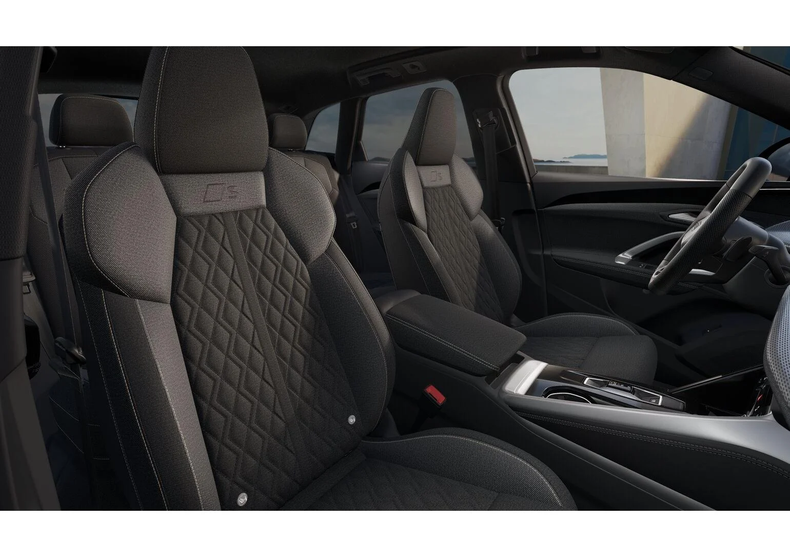 Siedzenia sportowe z tkaniny Kaskade z pikowaniem w romby i emblematem S